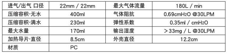 2. 進(jìn)出氣口徑:22mmOD可適用于成人呼吸器管路。