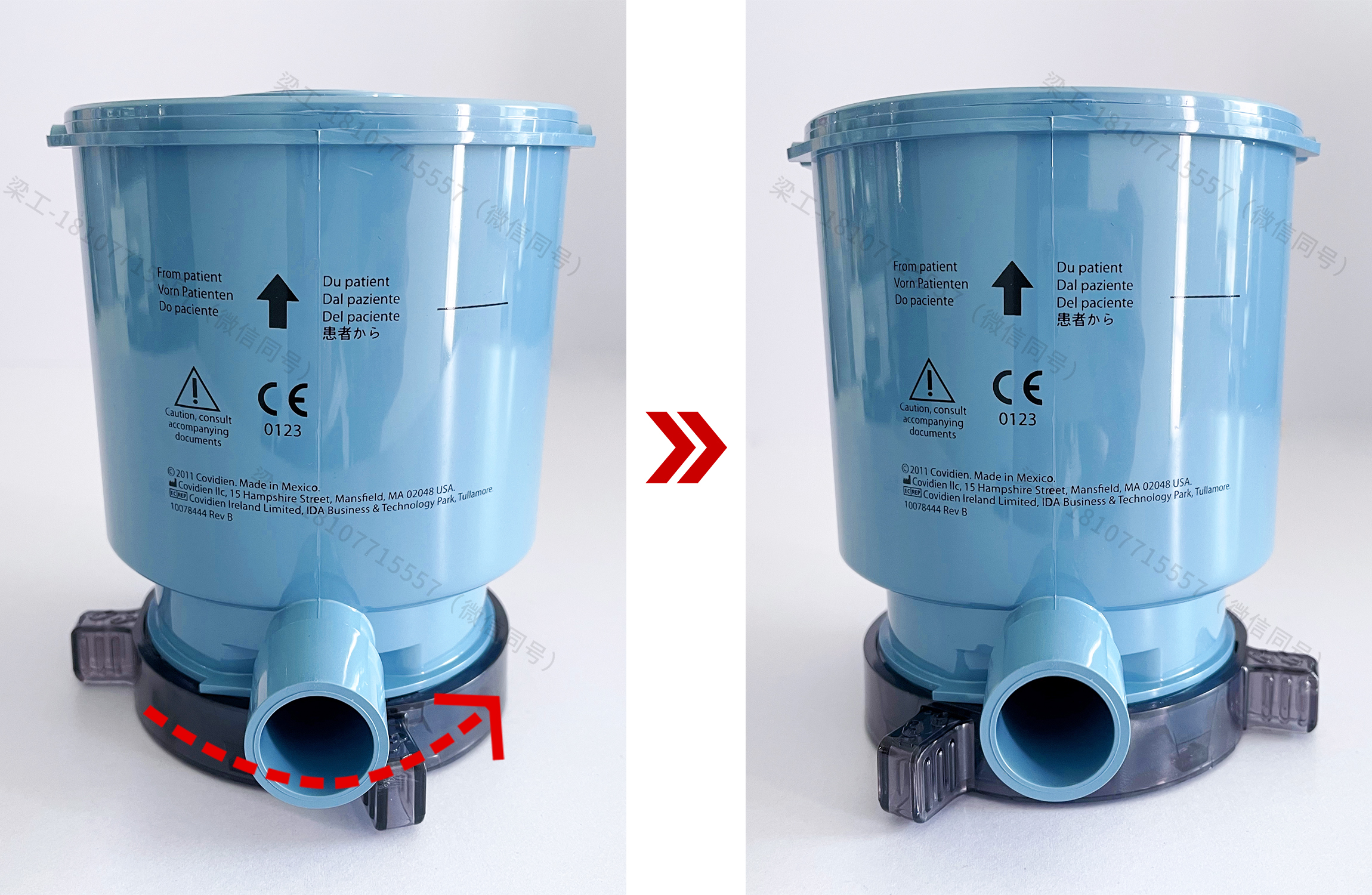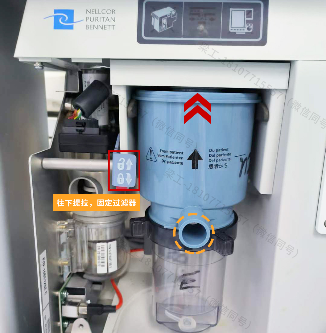 1.將呼出端過濾器鎖扣向右邊旋轉(zhuǎn),聽到“咔”的一聲即可。 2.將集水杯排水口膠塞與呼氣支口對準在同一水平線上,將集水杯卡緊在過濾器下方,然后往左邊扭緊。 3.將呼吸機主機左側(cè)鎖定裝置往上提拉至解鎖狀態(tài)。 4.將呼氣支口朝外,沿滑軌放入,并使呼出端過濾器邊緣滑到安裝槽內(nèi),推到最里面,推到不能推動為止;放下左側(cè)鎖定裝置,固定呼出端過濾器。 二、拆卸 1.將左側(cè)鎖定裝置往上提拉至解鎖狀態(tài),取出呼出端過濾器。 2.將呼出端過濾器鎖扣向右邊旋轉(zhuǎn),取下集水杯。 3.將集水杯內(nèi)的冷凝水倒入專門收集醫(yī)療廢棄物的容器。 (因為集水杯的冷凝水可能帶有傳染病菌) 4.擦干呼出端過濾器及集水杯的水珠,送去供應(yīng)室進行消毒。 三、消毒 PB840呼吸機的呼出端和吸氣端過濾器應(yīng)該采用高溫高壓的方式進行消毒(溫度132-134℃,20分鐘) 注意:溫度不宜超過135℃,禁止浸泡! 四、PB840呼吸機耗材(呼出端過濾器集水杯、吸入端過濾器、呼出端過濾器) PB840呼吸機流量傳感器 PB840呼吸機兼容氧電池 PB840呼吸機空壓機保養(yǎng)套件